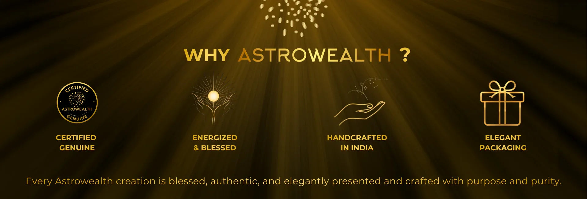 Astrowealth creations are lovingly handcrafted in India by skilled artisans, blending traditional spiritual wisdom with modern design for a truly premium experience.